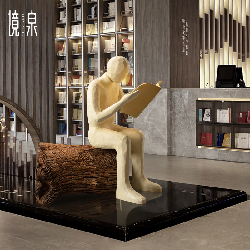 阅读者现代抽象人物雕塑艺术品图书馆门厅木雕装饰品大型落地摆件热门设计联盟服务商