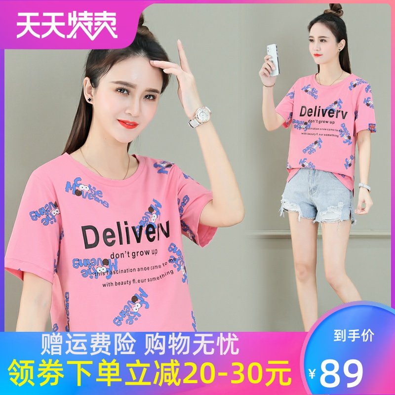 新品设计感小众印花夏装短袖T恤女装宽松显瘦纯棉上衣打底衫服饰热门设计联盟服务商