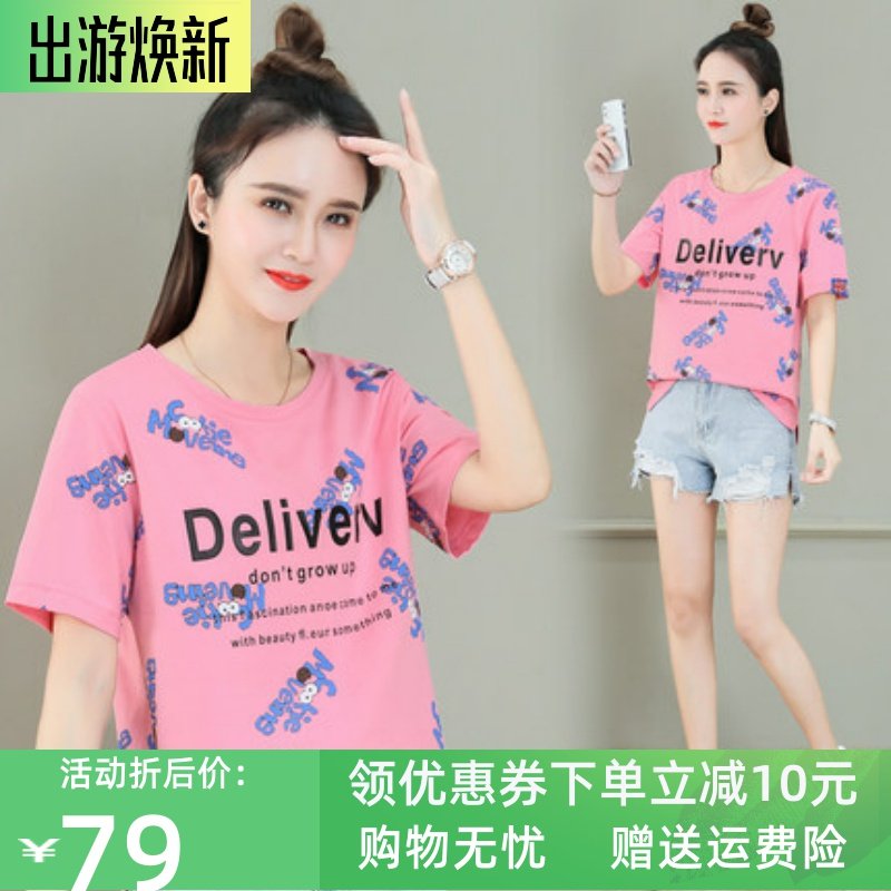 新品设计感小众印花夏装短袖T恤女装宽松显瘦纯棉上衣打底衫服饰热门设计联盟服务商