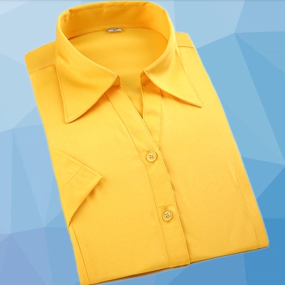 夏季女士商务短袖衬衫灰色显瘦免烫职业装方领修身工装工作服衬衣热门设计联盟服务商