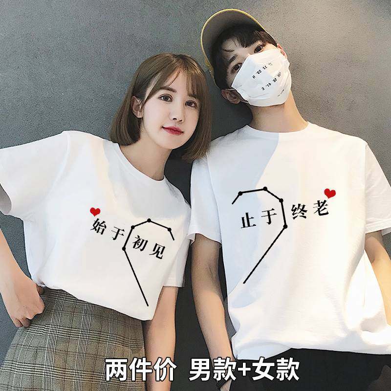 网红不一样情侣装夏装2021新款潮流短袖T恤女夏季小众设计感套装热门设计联盟服务商