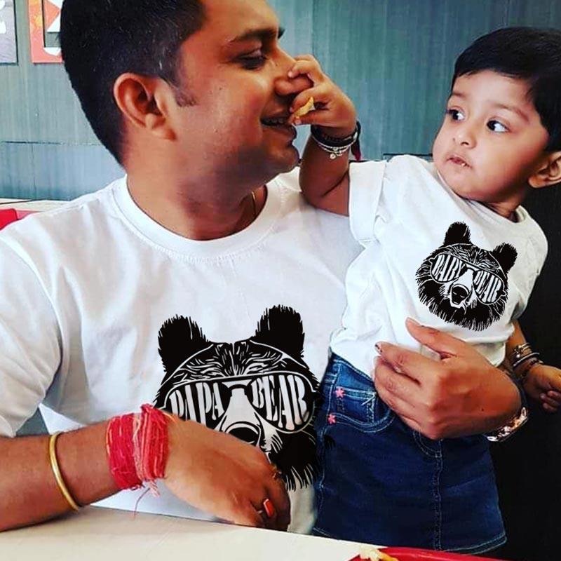 酷炫潮流洋气熊黑色墨镜卡通图案印花父子装夏装短袖T恤柔软透气热门设计联盟服务商