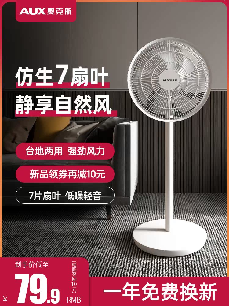 奥克斯落地扇家用宿舍小型电风扇立式夏天台扇静音工业大风力电扇热门设计联盟服务商
